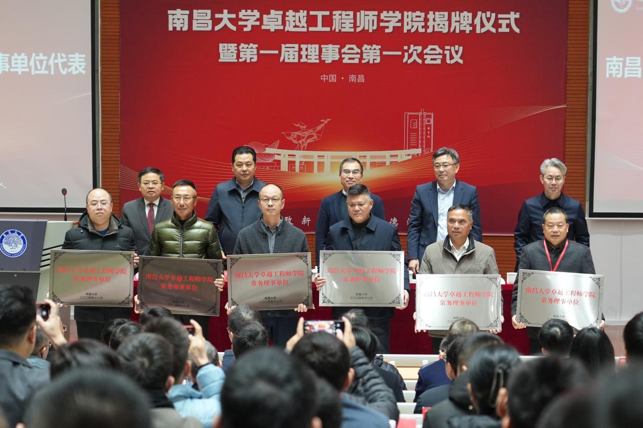 會上,領導嘉賓為南昌大學卓越工程師學院揭牌,并為卓越工程師學院理事長、副理事長、常務理事等單位授牌。