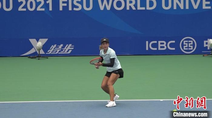 中國選手鄭嫵雙在成都大運會網球女子單打第2輪比賽中。