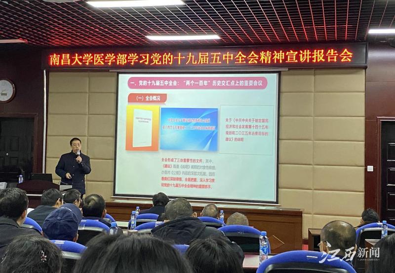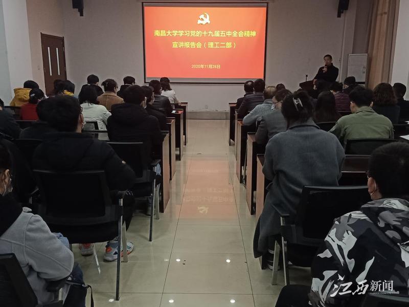 江西新聞客戶端訊 (江西日報記者駱輝)制定學習貫徹工作方案,對接校內外專家線上線下宣講,組建校內宣講團分片包干,召開全委會擘劃一流大學建設……連日來,南昌大學以領導干部帶頭授課、專家隊伍分片宣講、師生座談深度交流、對標精神謀劃未來等多種形式,掀起學習宣傳貫徹黨的十九屆五中全會精神熱潮。
