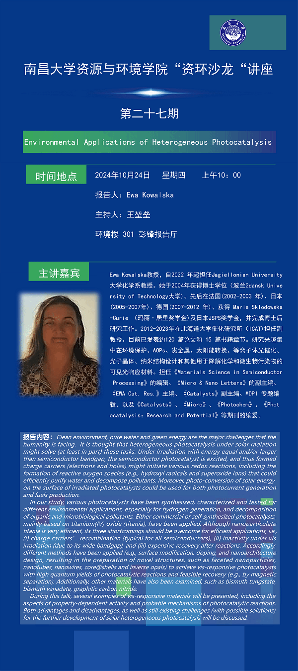 資源與環境學院資環沙龍第27期——Ewa Kowalska教授
